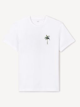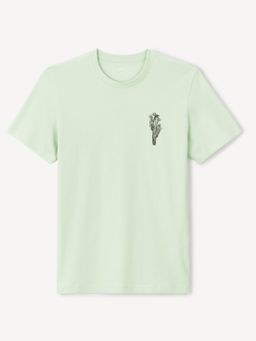Jednoduché, plážové tričko so zeleným nádychom pre každého moderného muža. Tričko má rovný strih, krátke rukávy a okrúhly výstrih. Potlač na prednej aj zadnej strane. Tričko je vyrobené zo 100% balvny, gramáž 160g/m2