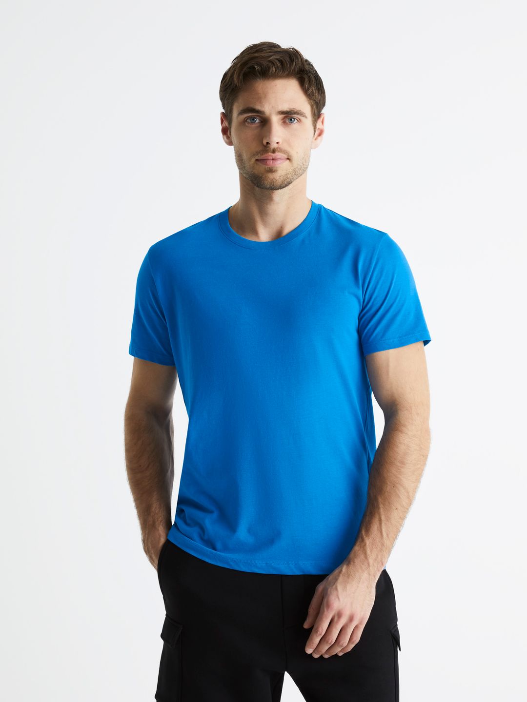 Bavlnené tričko s krátkym rukávom. Okrúhly výstrih ku krku. Jednofarebné tričko sa hodí k mnohým outfitom.
