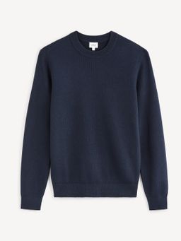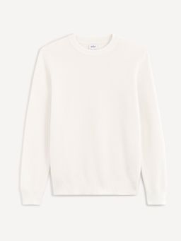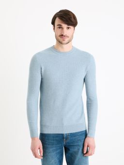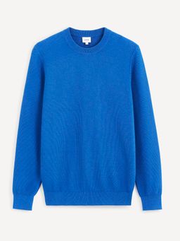 Bavlnený sveter s okrúhlym výstrihom a dlhým rukávom. Drobný vzor a pružné rebrované lemy. Sveter možno nosiť na tričko alebo košeľu a hodí sa k džínsom aj nohaviciam.