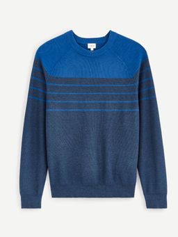 Bavlnený sveter s drobným prúžkom. Dlhé raglánové rukávy s pružným lemom. Okrúhly výstrih s rebrovaným nápletom.