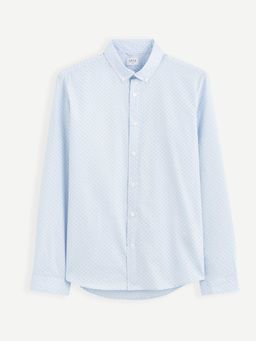 Bavlnená košeľa s dlhým rukávom. Košeľa má plošný bodkovaný vzor. Krátky golier so zapínaním na gombíky. Celozapínacia, rukávy s manžetou. Ľahko zaoblený spodný lem.