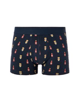 Tmavomodré boxerky s kečupovým vzorom z organickej, pružnej bavlny. Pohodlné a štýlové na každý deň.