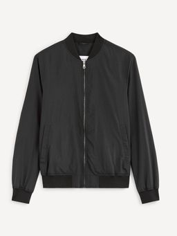 Bunda bomber v čiernej farbe. Klasický strih do pása so zapínaním na zips. Dlhé rukávy s pružným nápletom. Predné šikmé vrecká. Okrúhly výstrih s pružným lemom. Ľahká bunda s podšívkou.