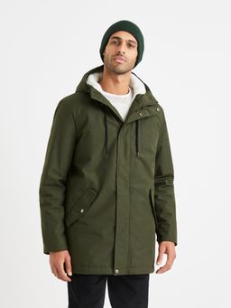 Zateplená parka s kapucňou. Voduodpudivý materiál. Zapínanie na zips a krycia chlopňa. Vrecká s chlopňami na patentky. Rovný strih.