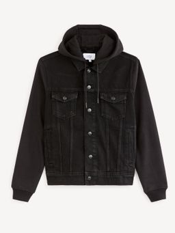 Džínsová bunda s kapucňou. Kapucňa z mäkkej teplákoviny a so sťahovacou šnúrkou. Klasický strih so zapínaním na kovové gombíky. Košeľový golier, vrecká s chlopňou a šikmé bočné vrecká. Kapucňu možno odopnúť.