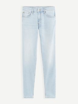 Svetlo modré džínsy so zapínaním na zips a gombík. Obľúbený úzky strih. Nosiť môžeš napríklad s tričkom a rozopnutou košeľou. Džínsy sú vyrobené zo strečovej bavlny, ktorá zaistí maximálne pohodlie po celý deň. Nechýbajú pútka na opasok a 5 vreciek. Džínsy sú prešité čiernou niťou.