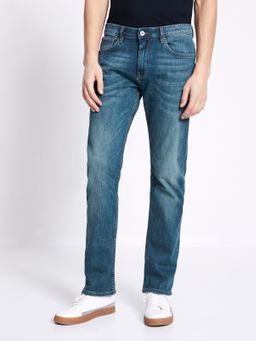 Klasické džínsy. Pohodlný straight strih. Štandardných 5 vreciek. Pevný pás so zapínaním na zips a gombík. Pútka na širší opasok. Rovný strih nohavíc.