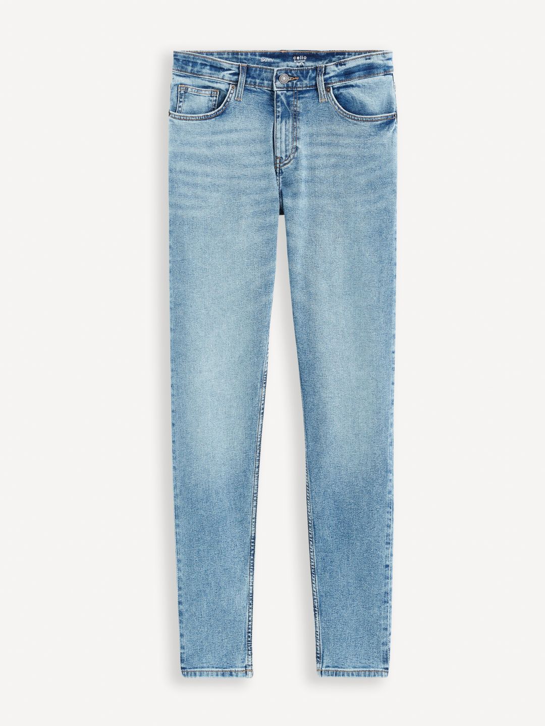 Svetlomodré džínsy. Úzky skinny strih skvelo doplní basic tričko a kockovaná košeľa. Bavlna s elastanom zaistia pohodlie. Džínsy majú 5 vreciek, zapínajú sa na zips a gombík. V páse pútka na opasok. Kontrastné prešitie.