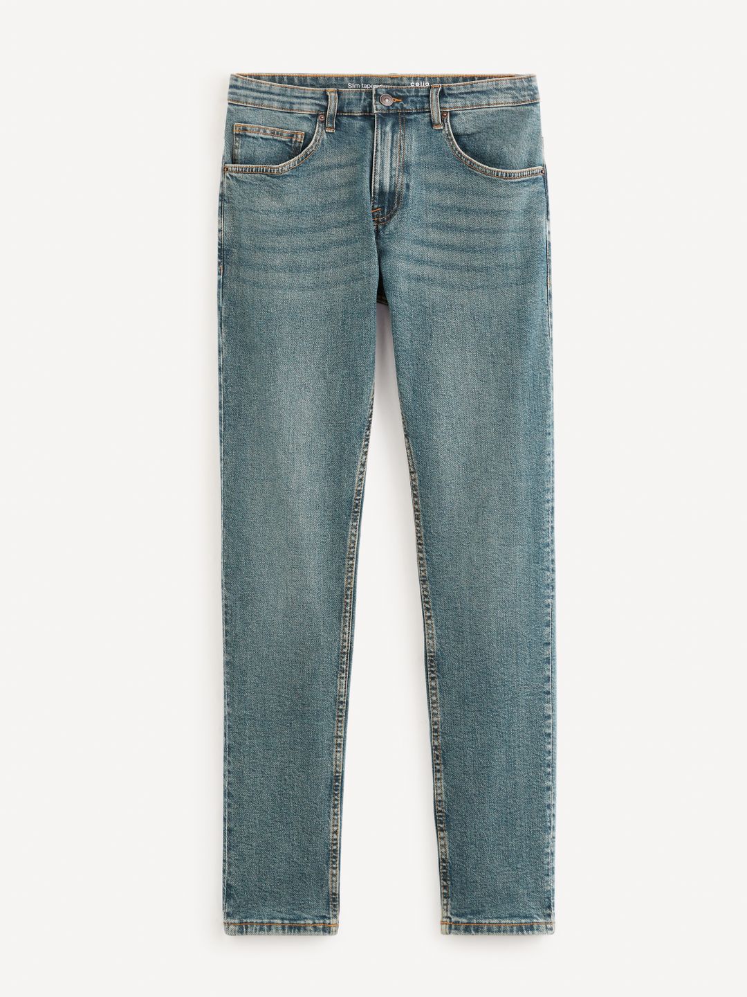 Pánske džínsy C25 obleč k trendy košeli alebo originálnemu tričku. Tieto džínsy majú štandardných 5 vreciek a pohodlný slim strih, ktorý patrí medzi najobľúbenejšie. Vyrobené z bavlny s elastanom. Zapínajú sa na zips a gombík a majú pútka na opasok a ozdobné prešitie.