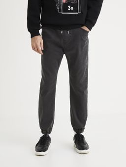 Voľnočasové a poholdné džínsy jogger s pružným pásom. Navyše sťahovacia šnúrka. Predné a zadné vrecká. Voľnejšie nohavice zakončené do pružného lemu.