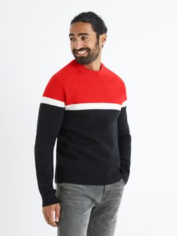 Viacfarebný look je pre tohtoročnú sezónu ultra trendy. Ak chcete oživiť svoj šatník, kúpte si tento dvojfarebný pánsky sveter s dlhým rukávom a okrúhlym výstrihom. Noste cez džínsy alebo joggery.
