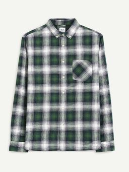 Flanelová košeľa s dlhým rukávom. Plošný kockovaný vzor. Golier so zapínaním na dva gombíky. Na hrudi našité malé vrecko. Dlhé rukávy s manžetou. Ľahko zaoblený spodný lem. 100% bavlna.