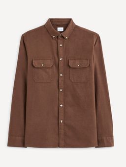 Jednofarebná flanelová košeľa je nevyhnutnosťou pánskeho šatníka. Táto 100% bavlnená košeľa s dlhým rukávom má na hrudi našité dve vrecká s chlopňou, golierik na gombíky a zaoblený spodný lem. Nosí sa k džínsom a tričku v cool ležérnom štýle.