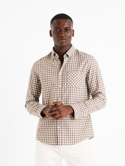 Flanelová košeľa s dlhým rukávom. Drobná kocka. Klasický golierik so zapínaním na gombíky. Na hrudi našitá malá kapsička. Dlhé rukávy s manžetou. Zapínanie na gombíky. Zaoblený spodný lem. Mäkký a príjemný flanel. Košeľa sa hodí k modrým džínsom alebo klasickým čiernym nohaviciam.