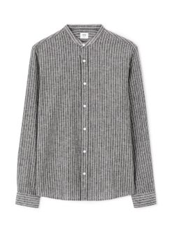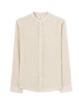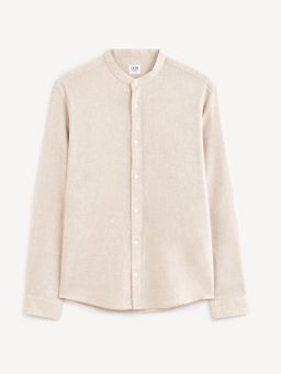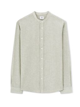 Ľanová jednofarebná košeľa s dlhým rukávom. Bez goliera a zapínania na gombíky. Rovný strih a zaoblený spodný lem. Materiál ľan a bavlna. Hodí sa k pláteným nohaviciam alebo k džínsom.