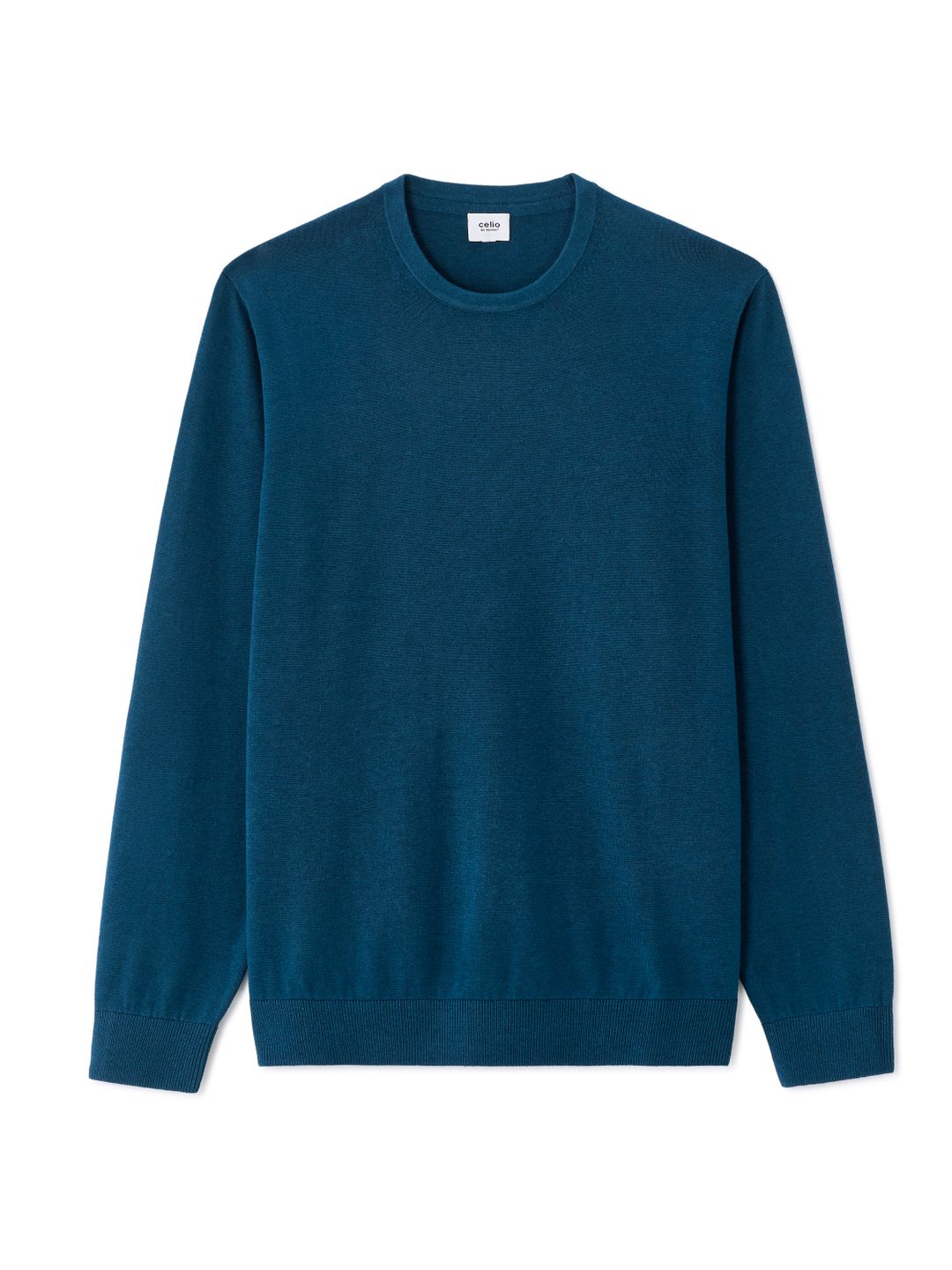 Bavlnený sveter s okrúhlym výstrihom a klasickým strihom sa stane nevyhnutnou súčasťou tvojho šatníka. Je hladko pletený, jednofarebný a s jemným melírom.