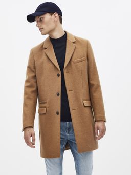 Elegantný kabát v rovnom strihu. Príjemný materiál s prímesou vlny. So zapínaním na gombíky a klopami. Predné vrecká s príklopkou a malá náprsné vrecko. Dlhší strih s rázporkom.