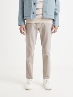Klasické plátené nohavice v slim strihu. Pevný pás s pútkami na opasok. Predné a zadné vrecká. Zapínanie na zips a gombík. Bavlnené s elastanom.