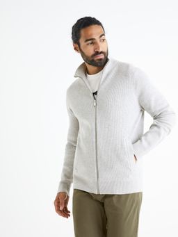 Vďaka zipsu je možné tento sveter nosiť zapnutý alebo rozopnutý. Stojačik pri krku vás ochráni pred chladom. Praktické bočné vrecká pojmú napríklad vreckovku. Príjemný materiál s rebrovaným vzorom. Svetlosivý melír sa vám bude dobre kombinovať. Doplníte tričkom alebo košeľou.