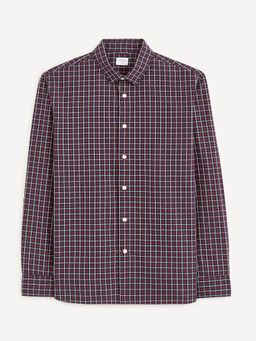 Kockovaná košeľa z bavlneného popelínu. Košeľa má pohodlný regular strih. Pri krku drobný golier bez zapínania. Dlhé rukávy s manžetou. Celozapínacie, biele drobné gombíky. 100% bavlna.