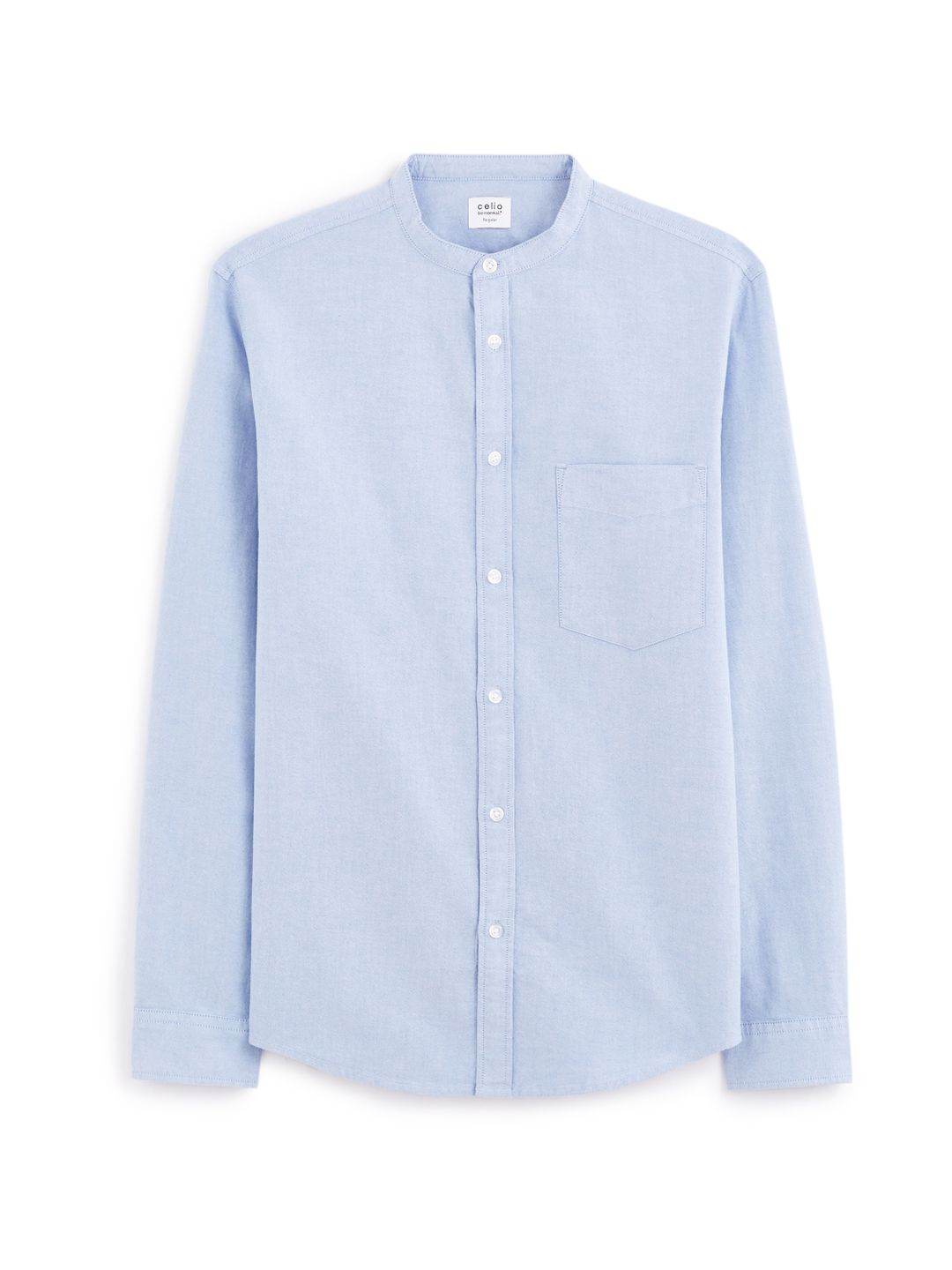 Predefinuj svoj štýl s touto pánskou košeľou Oxford, ktorá je perfektnou voľbou pre neformálny, ale elegantný vzhľad po celý rok. Svetlomodrá farba a 100% bavlna ti zaistia komfort a príjemný pocit po celý deň. Regular fit strih a dlhé rukávy dodávajú košeli modernú siluetu, zatiaľ čo Mao golierik prináša svieži a sofistikovaný nádych. Ideálny kúsok, ktorý sa hodí do práce, na schôdzky alebo aj na voľný čas.