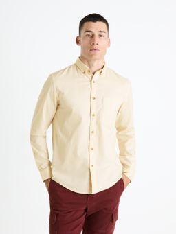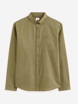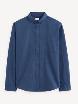 Kvalitná košeľa vyrobená z bavlneného plátna. Pravidelný strih. Košeľa má dlhé rukávy s manžetou. Klasický golier a zapínanie na gombíky v kontrastnej farbe. Zaoblený spodný okraj. Pekná jednofarebná košeľa k džínsom a šortkám.