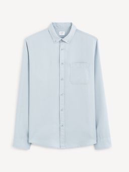 Jednofarebná košeľa z príjemného materiálu lyocell. Košeľa má rovný strih regular. Golierik so zapínaním na gombíky. Na hrudi našité vrecko. Dlhé rukávy s manžetou. Zaoblený spodný lem.