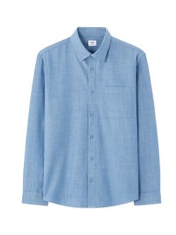Košeľa s denimovým efektom, ktorá spája pohodlie a štýl. Regular strih s dlhým rukávom a francúzskym golierom poskytuje mäkký pocit na dotyk, doplnený našitým vreckom na hrudi ako praktickým detailom.