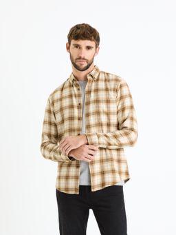 Bavlnená košeľa s kockovaným vzorom. Moderný krátky golierik. Na hrudi našité malé vrecko. Zapínanie na gombíky. Dlhé rukávy s manžetou. Zaoblený spodný lem. Strih regular. Nadčasová košeľa k džínsom.