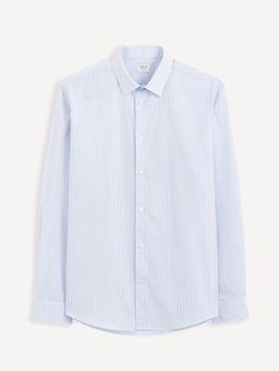 Bavlnená košeľa s prúžkami. Regular strih a zapínanie na gombíky. Moderný golierik a dlhé rukávy s manžetou. Zaoblený spodný lem.