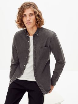 Bavlnená košeľa v šedej farbe s dlhým rukávom. Krátky golier kent so zapínaním na dva gombíky. Praktické malé náprsné vrecko.