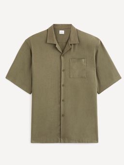 Košeľa s krátkym rukávom. Pri krku rozhalenka a zapínanie na gombíky. Malá kapsička. Príjemný materiál s obsahom ľanu.