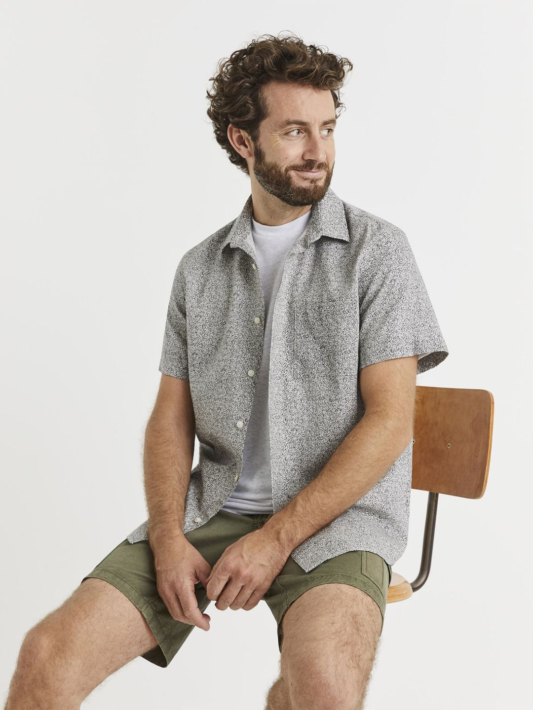 Košeľa v strihu regular. Drobne vzorovaná. Krátky rukáv a klasický golier. So zapínaním na knofíčky a malé vrecko na hrudi. Bavlnená s prímesou ľanu.