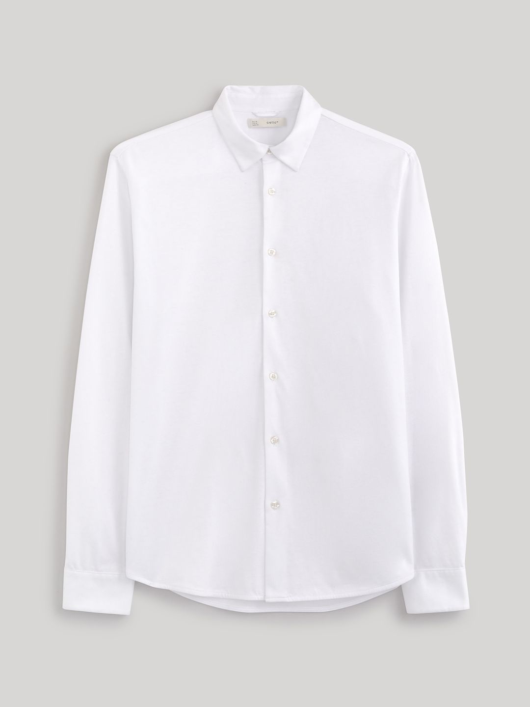 Bavlnená košeľa z džerseja. Dlhé rukávy s klopami. Moderné kratšie golier. Rovný strih.