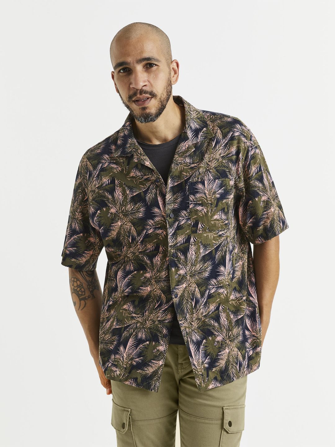 Vzorovaná košeľa v havajskom štýle. Krátke rukávy a voľný strih. So zapínaním na gombíky. Na hrudi malé vrecko. Príjemný materiál s prímesou ľanu.