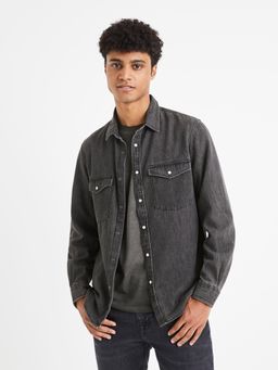 Bavlnená košeľa v šedej farbe. Western strih. Klasický golier. Dve vrecká s chlopňou.