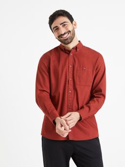 Košeľa s dlhým rukávom. Moderný krátky golier. Zapínanie na gombíky. Na hrudi malé vrecko.