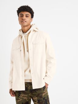 Vrchní bavlněná košile worker s dlouhým rukávem. Klasický límec a zapínání na knoflíky. Kapsy s chlopní. Rovný střih.