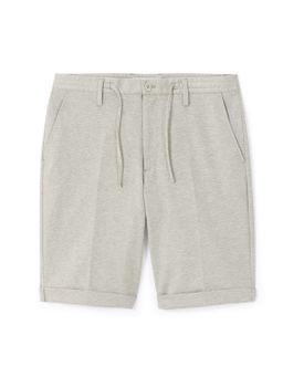 Elegantné kraťasy, v ktorých sa budeš cítiť skvele ako v práci, tak aj na párty pri bazéne. Sivé kraťasy s pružným pásom. V páse navyše sťahovacia šnúrka a pútka na opasok. Zapínanie na gombík a zips. Predné šikmé vrecká.