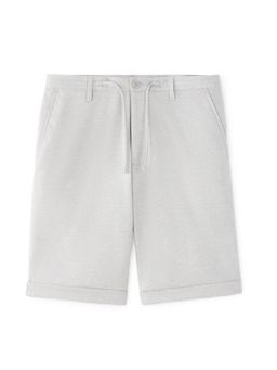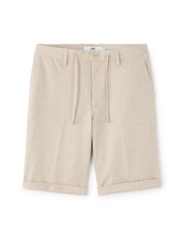 Elegantné kraťasy, v ktorých sa budeš cítiť skvele ako v práci, tak aj na párty pri bazéne. Béžové kraťasy s pružným pásom. V páse navyše sťahovacia šnúrka a pútka na opasok. Zapínanie na gombík a zips. Predné šikmé vrecká.