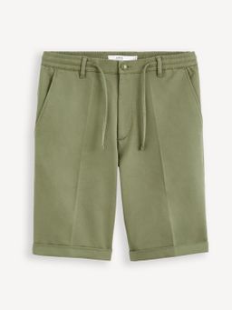 Kraťasy s pružným pásom a sťahovacou šnúrkou. Zapínanie na háčik a zips. Predné šikmé vrecká a zadné vrecká.