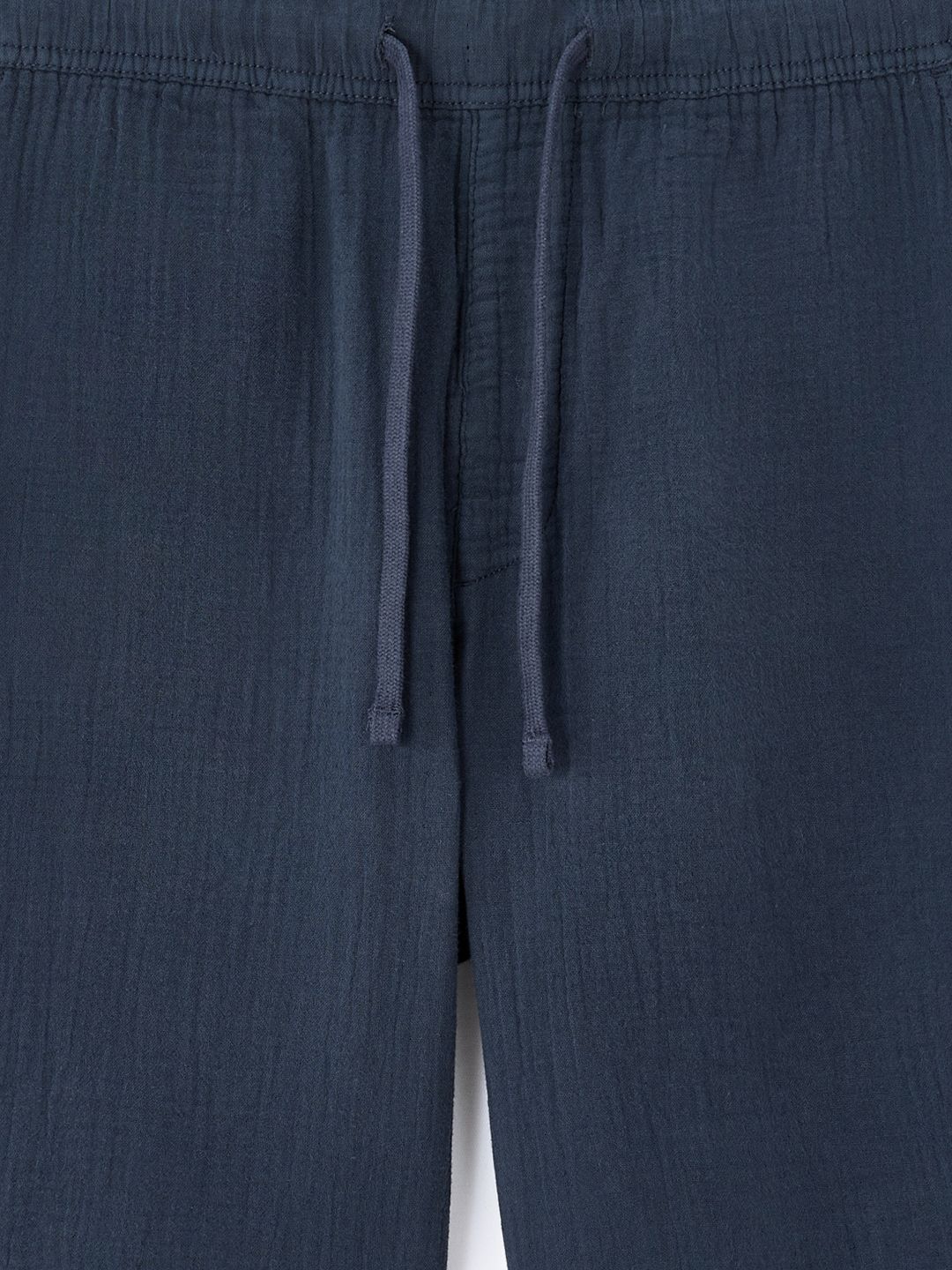 Uži si maximálne pohodlie a ležérnu eleganciu s týmito pánskymi bermudami. Ľahká bavlnená gázovina ti zaistí voľnosť a priedušnosť aj v horúcich dňoch, elastický pás so sťahovacou šnúrkou sa zase postará o perfektné padnutie. Ideálny kúsok na dni plné slnka a pohody.