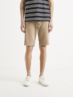 Jednofarebné úpletové kraťasy. Pevný pás s pútkami na opasok. Šikmé bočné vrecká. V páse sťahovacia šnúrka. Príjemný materiál s elastanom. Širšie nohavice v dĺžke nad kolená.