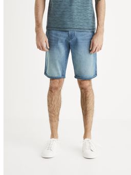 Džínsové šortky s elastanom. V páse sťahovacia šnúrka. So zapínaním na zips a gombík. Predné šikmé vrecká. Širšie nohavice v dĺžke na kolená.