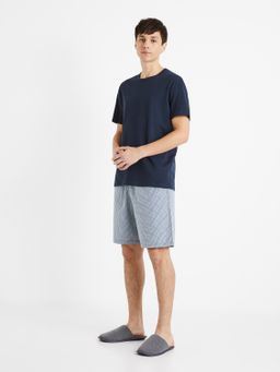 Pyžamo zo 100% bavlny. Jednofarebné tričko a kraťasy s drobným vzorom. V páse sťahovacia šnúrka a bočné vrecká.