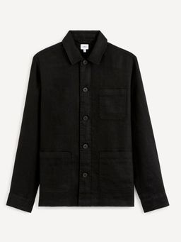 Vrchná ľanová košeľa. Rovný strih so zapínaním na gombíky. Klasický golier a vrecko na hrudi. Dlhé rukávy s manžetou.
