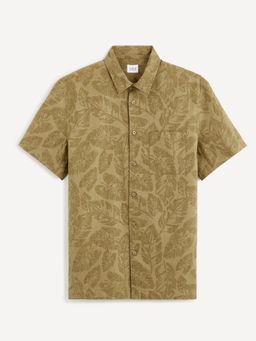 Košeľa s krátkym rukávom a plošným vzorom. Vyrobená zo zmesi ľanu a bavlny. Klasický golier a vrecko na hrudi. Zpínanie na gombíky.