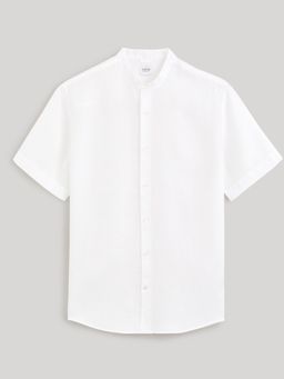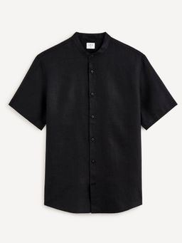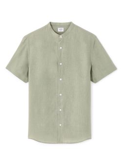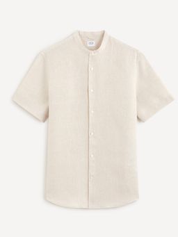 Ľanová košeľa s krátkym rukávom. Pri krku krátky stojačik bez golierika. Zapínanie na gombíky a rovný strih. Zaoblený spodný lem. Hodí sa ku kraťasom alebo džínsom.