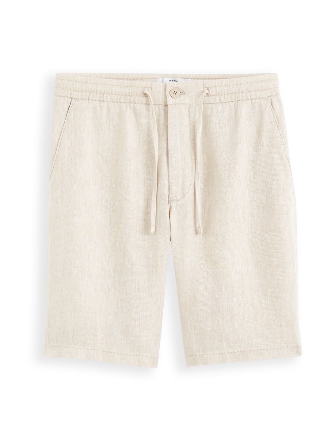 Ľanové kraťasy s pružným pásom. V páse sťahovacia šnúrka. Predné šikmé vrecká. Zadné vrecko so zapínaním na gombík.