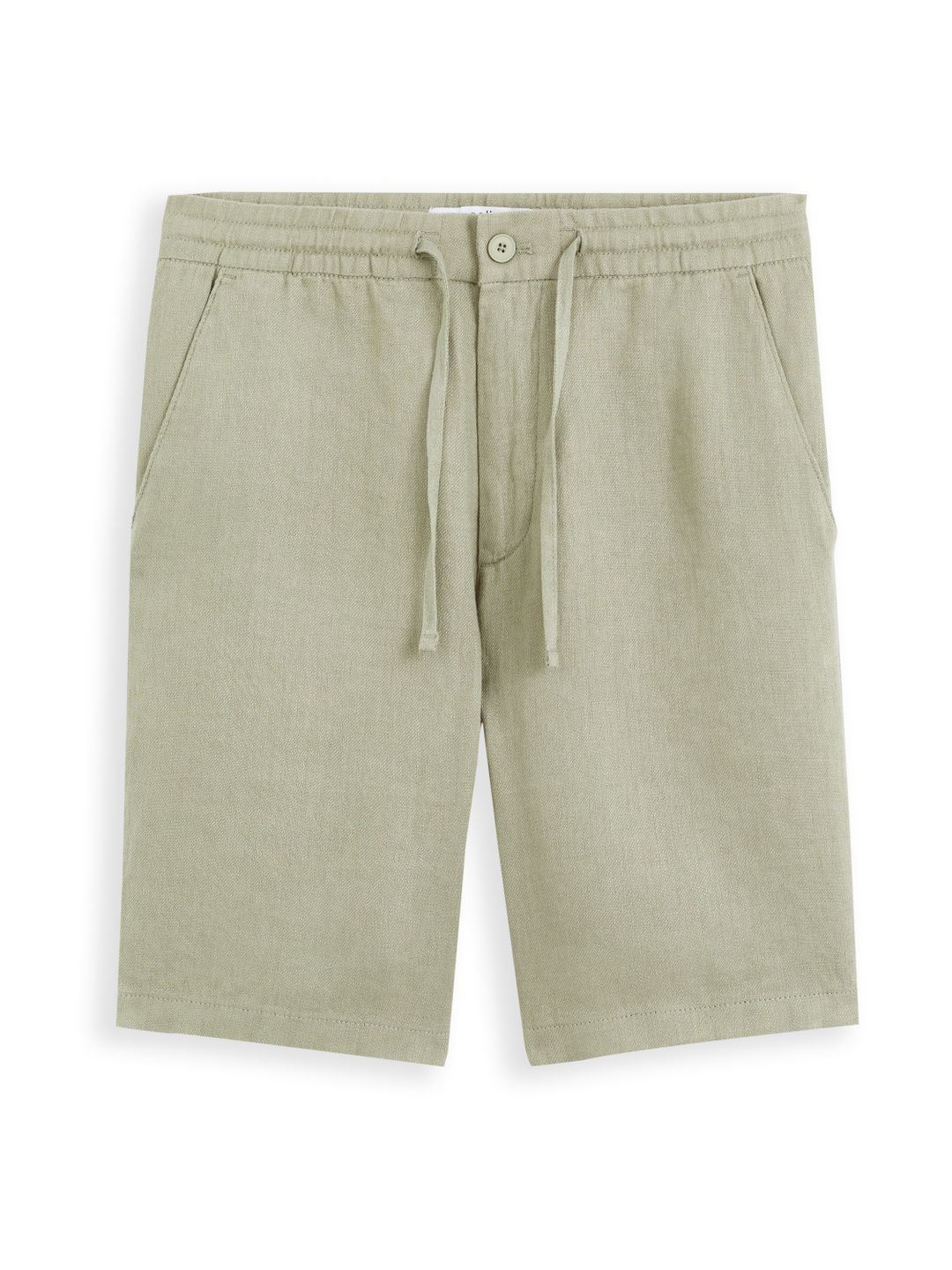 Ľanové kraťasy s pružným pásom. V páse sťahovacia šnúrka. Predné šikmé vrecká. Zadné vrecko so zapínaním na gombík.
